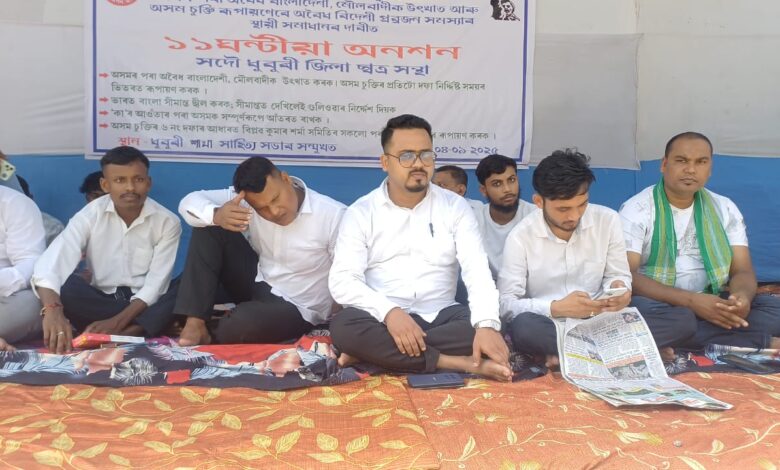 अखिल असम छात्र संघ (AASU) ने आज धुबरी के साहित्य सभा कार्यालय के पास 11 घंटे का अनशन किया। इस दौरान संघ ने कई मांगें रखीं, जिनमें मुख्य रूप से अवैध विदेशियों को असम से निष्कासित करने, हिंदू शरणार्थियों को CAA के तहत असम पर बोझ न डालने, सीमा क्षेत्रों में घुसपैठ रोकने के लिए “देखते ही गोली” का आदेश जारी करने, अवैध मौलवादियों की गिरफ्तारी तथा भारत–बांग्लादेश सीमा को पूरी तरह सील करने की मांग शामिल रही।