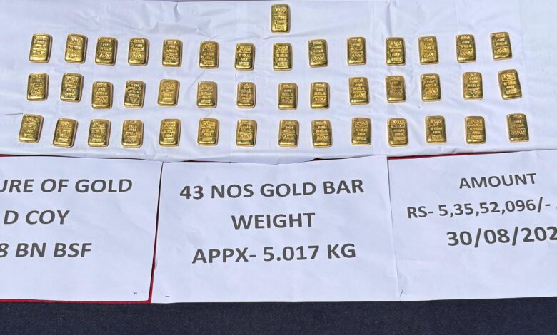 भारत-बांग्लादेश सीमा पर बीएसएफ की बड़ी कार्रवाई, 5 करोड़ रुपये के सोने के बिस्कुट जब्त