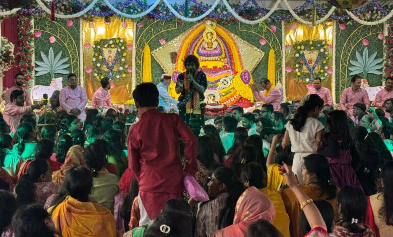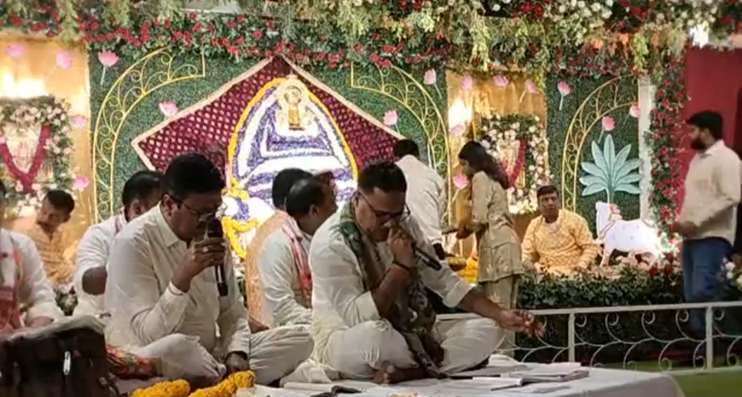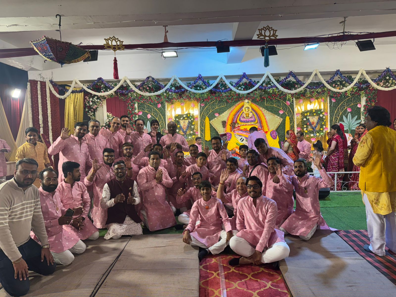 नगर निवासी नितेश खेड़िया के निवास पर हुए भव्य स्वागत, संध्याकालीन व प्रातःकालीन आरती और असमिया परंपरा के अनुसार अभिनंदन ने भक्तों को भावुक कर दिया।