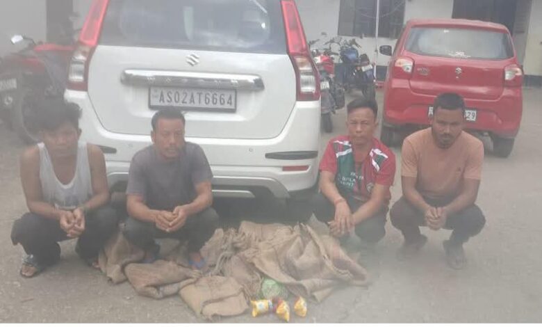 मौके से एक सफेद वैगन आर (AS-02AT-6664), कई जूट के बोरे और ब्रिटानिया बिस्किट के तीन पैकेट बरामद किए गए, जिनका इस्तेमाल कुत्तों को फुसलाकर पकड़ने के लिए किया जा रहा था।