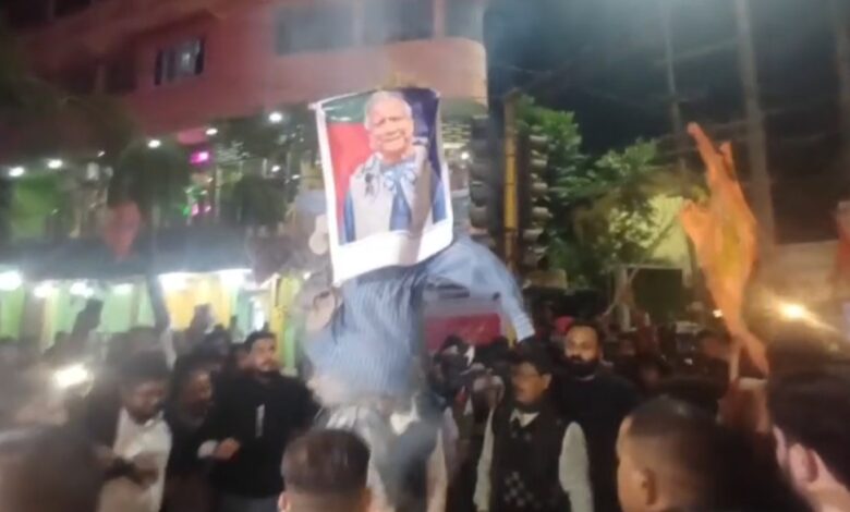 बांग्लादेश में हिंदुओं पर अत्याचार के विरोध में धुबड़ी में आक्रोश रैली, डॉ. यूनुस का पुतला दहन