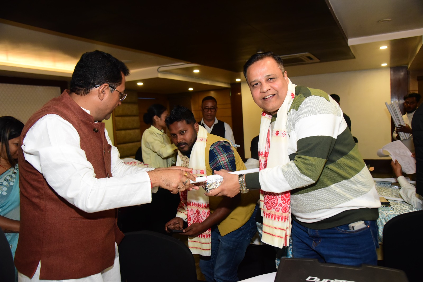 नगांव शहर के एक होटल में विधायक रूपक शर्मा की ओर से पत्रकारों के सम्मान में आयोजित ‘भोगालीर एखाज’ कार्यक्रम से पूर्व एक संवाद सत्र का आयोजन किया गया।