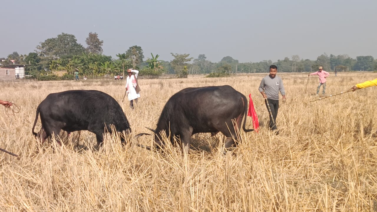 मकर संक्रांति और भोगाली बिहू के अवसर पर जिले के आहतगुड़ी क्षेत्र में भैंसों की पारंपरिक लड़ाई का बृहद आयोजन किया गया, जिसने एक बार फिर ग्रामीण संस्कृति और लोकआस्था की अनूठी झलक पेश की। यह आयोजन वर्षों से इस इलाके की पहचान बना हुआ है और आज भी पूरे उत्साह के साथ निभाया जा रहा है।