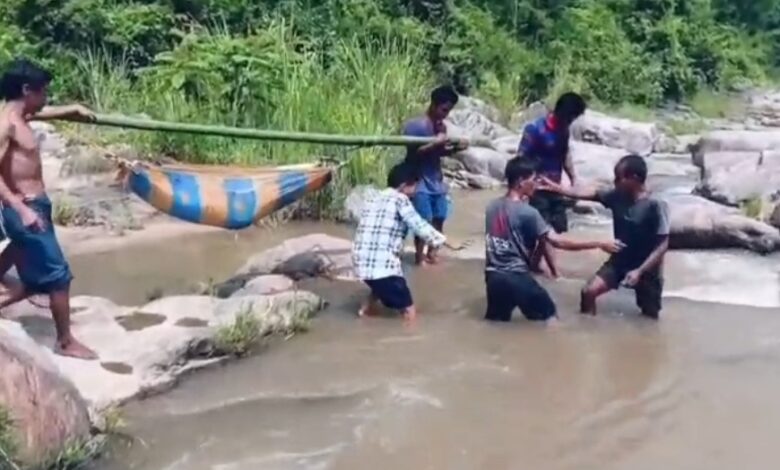 यह रास्ता न सड़क है, न पुल। केवल नदियों पर डगमगाते बांस के पुल और चारों ओर घना जंगल। ऐसे हालात में अस्पताल पहुँचना किसी जंग से कम नहीं।